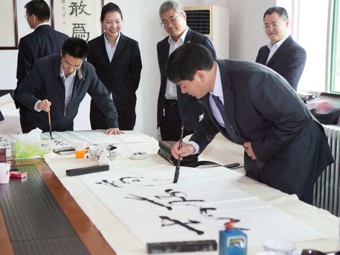 为弘扬传统文化,丰富员工业余生活,5月6日上午,中航建设集团有限公司举办了首届书画艺术学习交流活动。本次活动邀请了中国书法家协会会员孟云飞博士、中国书法家协会理事张铜彦先生、中国书法家协会编辑出版委员会副主任王荣生教授、人民艺术家协会理事于瑛先生等国内知名书画大师,各位书画大师在活动现场进行了艺术创作表演,挥毫泼墨,交流技艺,为中航建设集团有限公司留下了数十副墨宝,还对部分员工的书画作品进行了悉心指导。公司员工现场欣赏了书画大师的艺术创作,并聆听了有关书画艺术鉴赏知识的介绍,部分员工还在活动现场进行创作,听取书画大师的讲解示范和点评。