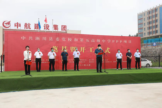 淅川项目负责人陈俊强在致辞中表示,感谢淅川县委县政府给予的指导和帮助,中共淅川县委党校和第五高级中学PPP项目作为集团公司在淅川县首个同时开工奠基项目,标志着中航建设集团和淅川县政府开启了合作共赢新篇章。项目部将以高度的责任心与使命感,坚持效率和质量并行,精心组织施工,认真履行合同,安全、优质、高效、圆满地完成建设任务,以精品工程回馈社会、惠及民生,为建设水清民富县强的新淅川贡献力量。