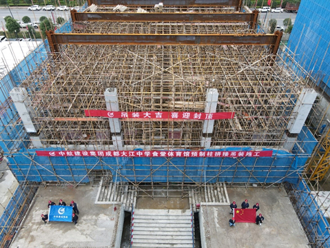 2021年10月9日,来自西南交通大学、中国建筑西南设计研究院、四川原理装配式建筑设计院等多家单位设计人员,齐聚中航建设集团四川分公司承建的成都大江中学项目,与分公司总经理宋景友、副总经理张铁强等相关领导一起,共同见证了国内学校建设领域首例预制混凝土柱拼接连接吊装施工的顺利完成。