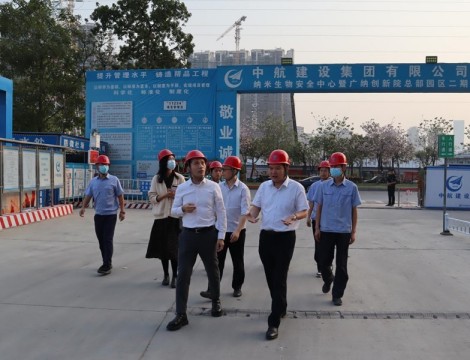2023年2月21日,广东省住房和城乡建设厅建筑市场监管处副处长何志坚莅临中航建设集团有限公司承建的广州纳米生物安全中心暨广纳创新院总部园区项目(以下简称纳米项目),对纳米项目一期、二期建设工程智能建造项目试点工作开展情况进行实地考察调研,中航建设集团南方工程有限公司党支部书记徐刚迎接陪同。